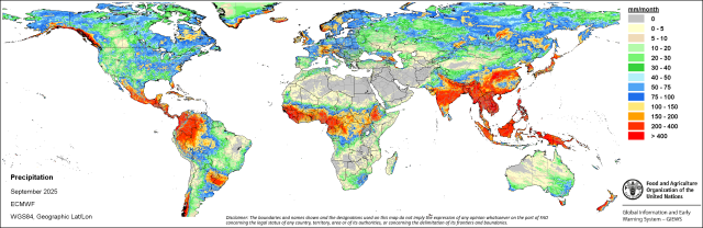 A 2025. szeptember havi becsült csapadékösszeg (mm) (forrás: www.fao.org)