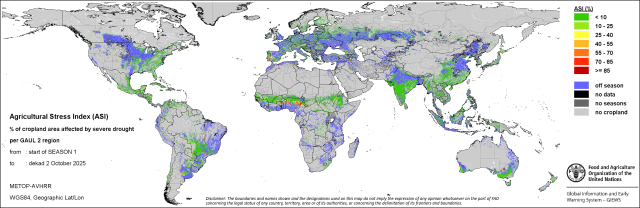 ASI Index mezőgazdasági kultúrákra 2025. október második dekádjában (forrás: www.fao.org)