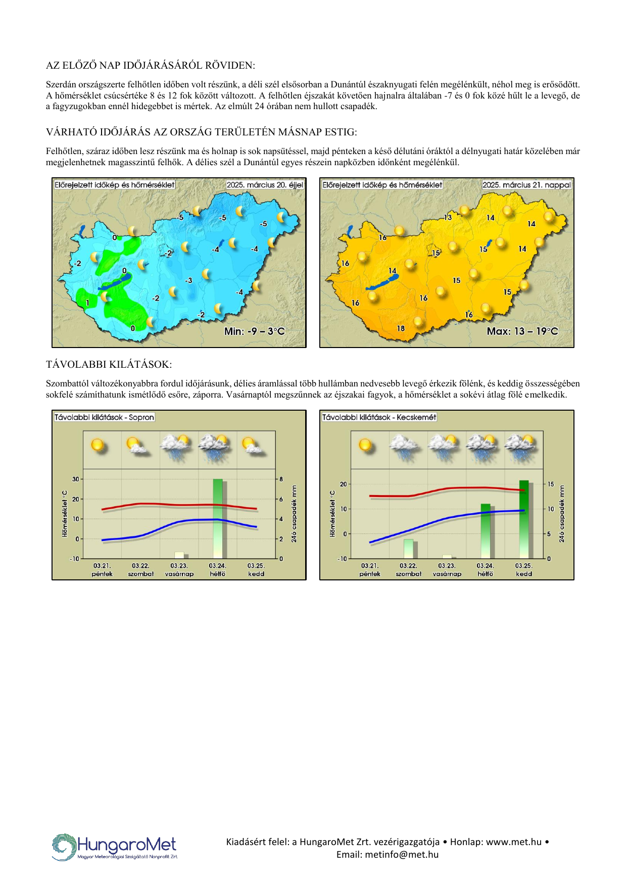 • minimum és maximumhőmérséklet: előző nap 19 CET-től aznap 19 CET-ig,